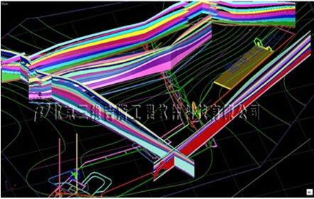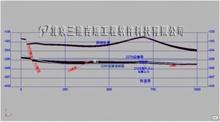 3、三维地层剖切:沿巷道导线、沿勘探线、任意剖面线,自动生成立体剖切图;