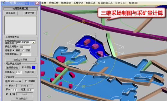 (12)矿井三维、平面各种图形进行分类管理(安全生产管理不可缺少的功能):通过浏览器直接浏览三维、二维图形,并可随意缩放、旋转、任意角度立体剖切、三维测距、标注等功能。