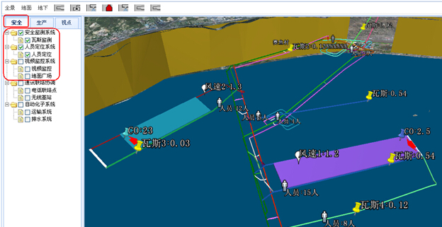 (9)安全生产调度管理三维可视化,直观显示矿井安全生产综合状态