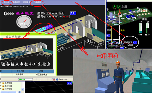 (10)由总体(综合)信息到细节(具体)信息分层次查询功能,以三维、二维图形与动画、图像、曲线、数据、报表等多种方式表现矿井状态。